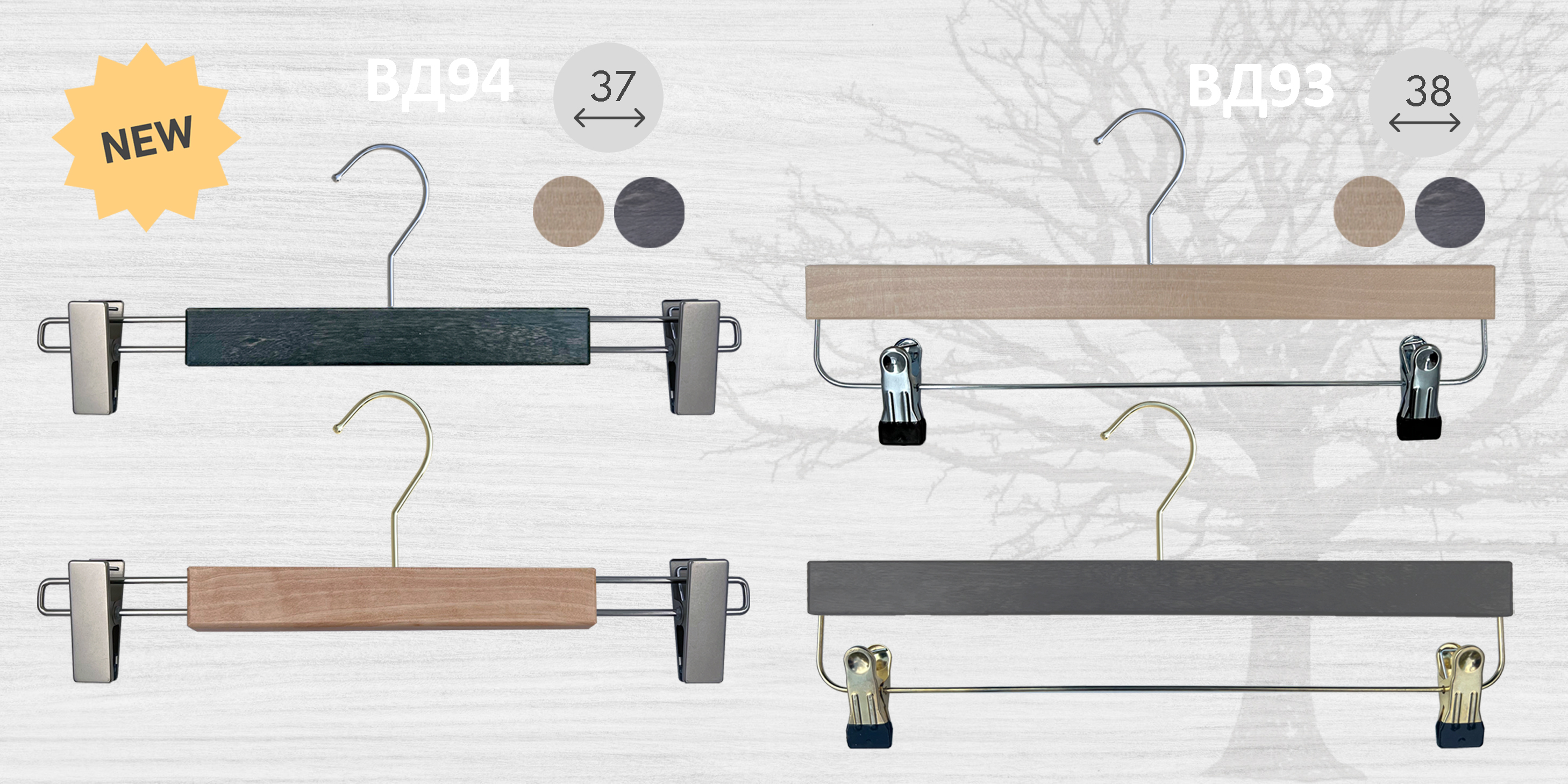 Представляем новую модель вешалки для брюк и юбок! Вешалка В240 с металлическими перекладиной и прищепками. Длина вешалки 37 см. По внешнему виду и стилю может быть поставлена в комплект с вешалкой для верхней одежды В430.
